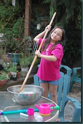 Lots of hands on projects this week as we learned how soap would have been made in the early 1600’s. After learning how water would displace the air in a submerged bottle, Dacia Grace enjoyed “making soap” for us.